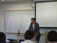 社会人のためのアジア理解講座「お茶を愉しむ~日本、アジア、そしてヨーロッパ」全6回の第2回は「日本の茶文化」をテーマとし、田中が担当した。参加者は約45名。講義では、最近の展覧会で茶道史が書き換えられつつある現状と、日本の茶文化を抹茶で代表させた岡倉天心の『茶の本』の記述説明と時代状況を多角的に説明した。そして、天心のみならず、昭和初期の日本が、東洋文明を背負うという意識を持っていることを手がかりに、「帝国」の位置にあった国と日本の関係に注目して、平安時代から現代までの日本の茶を大きくとらえ直す試論を呈示した。やや、専門的な内容ながら、最後まで熱心に聞いてもらえたのは幸いであった。これには、国際関係学部の事務職員の方と学生たちの協力により、途中で、御菓子とお茶の休憩時間を設けてもらった効果も大きいと感謝している。「日本の茶」といっても、利休時代までの説明では不十分に感じられるようになっているのではないか、との予測が確認できたのが最大の収穫である。この成果を生かして、今後の日本の茶文化の説明を充実させていきたいと考えている。