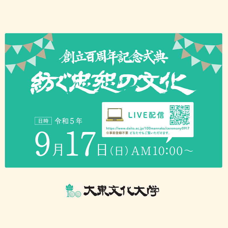 大東文化大学は、本日2023年9月20日に創立100周年を迎えました。