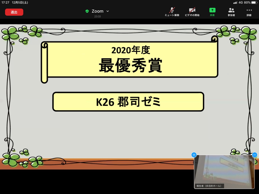 K26郡司ゼミ:代表 佐藤洸輔さん「新型コロナウイルス感染拡大による貯蓄率への影響」でした。