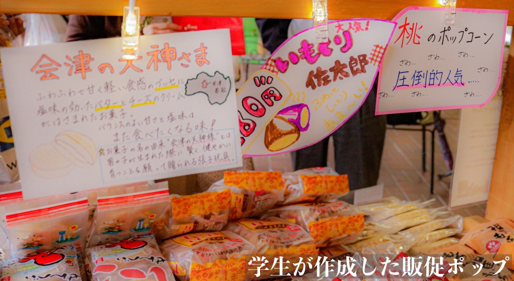 やはり、新型コロナウイルスの影響で、政治学インターンシップの実施も、福島物産展の開催も延期せざるを得なくなってしまったので、⼤変だったこととして印象深いです。あとは、⼤変だったことではないけど、福島は全国新酒鑑評会で⾦賞受賞の酒蔵が9年連続⽇本⼀の酒処なんですよ。僕はお酒が好きなので、⽇本酒を販売して魅⼒を伝えたかったけど、キャンパスということもあって販売が出来なくて、仕⽅がないけど、残念だったな(笑)。ただ、100円〜200円の学⽣でも購⼊しやすい商品と、500〜1,000円の教職員向けの少し⾼い商品を準備しているので、多くの⼈に買いに来て欲しい。