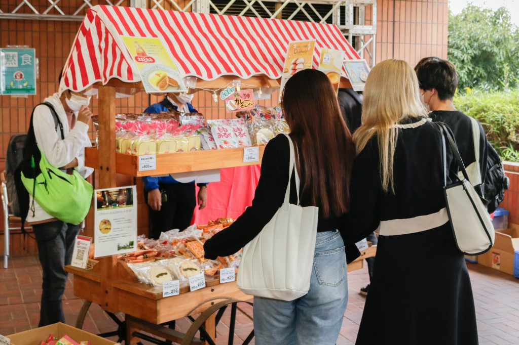 2日目の4限終了頃に「さっき “相馬もちパイ” を購入して食べたらめっちゃ美味しくて、もう一度買いたくなって急いできたんです!」と走りながらやってくる2人の学生がいました。しかし、商品は完売。残念そうな2人を見かねた武田教授は「そんなに気に入ってくれたなら、僕も嬉しいから。」と、ご自身が購入していた分をプレゼントされました。2人は「ありがとうございます!」と、とても喜んでいました。学生らしい純粋な気持ちと、それに応える武田教授の真心が垣間見えた瞬間に、私も心がほっこりしました(笑)。
