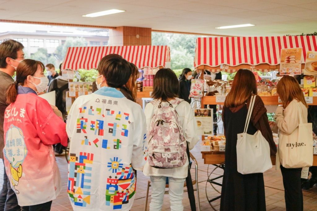 プレオープン5日目と6日目の10月17日、18日、政治学科 武田知己教授と政治学インターンシップ(福島被災地研修)に参加した学生らによって、政治学インターンシップ成果報告会と福島物産展を掛け合わせたイベントが行われました。