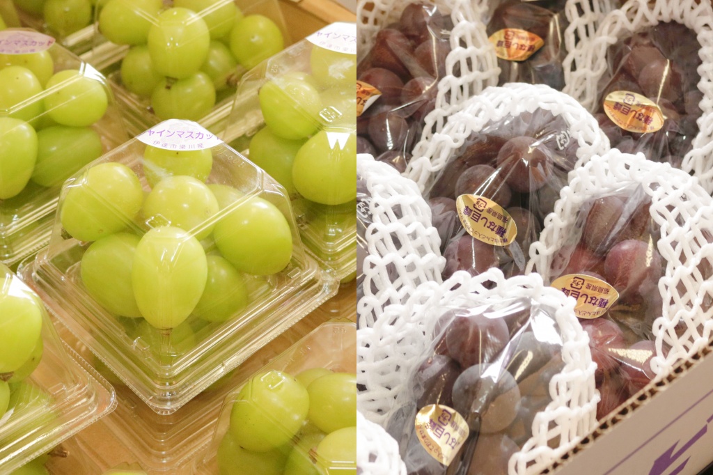 今回の福島物産展は、福島県アンテナショップの日本橋ふくしま館MIDETTE(ミデッテ)の協力によって実現しました。物産展では、福島県産の “シャインマスカット” や “巨峰” をはじめとした50種類以上の商品が並び、政治学インターンシップに参加した学生が作成した販促ポップや広報ポスターの掲示、福島県の県章や特産品が描かれたハッピを着用しての呼び込み、学生向け商品を全面に推し出した陳列など、武田教授、学生、ミデッテが一丸となってイベント運営を行いました。