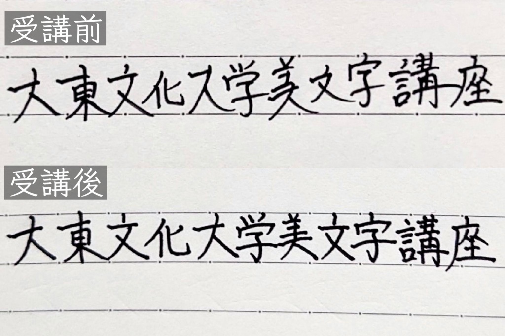 書道について理解が深まったところで、皆さんは自分の書く文字に対して向き合ったことはあるだろうか?綺麗な文字を書くのが面倒くさい、文字を書いたところで評価されることがない、自分の汚い文字が嫌いといった理由などから、自分が読めれば良いと文字を書くということを嫌煙してしまう人も多いかと思われる。しかし、日常で不意に見る達筆と形容するしかない文字には不思議と目が行ってしまう。書道が昔から存在しており、今なお芸術として国内外から評価を受けているのは綺麗な文字には魅力が詰まっているからに他ならないであろう。そこで皆さんの文字をより魅力的にするために美文字講座を通して得た美しい文字の書き方(コツ)について紹介する。少し意識するだけで字が綺麗にみえるため、ぜひ日常で字を書く際には活用していただきたい。