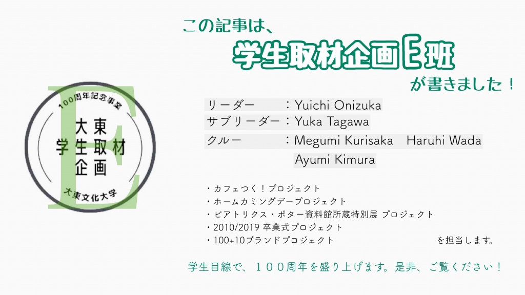 ※本記事は100周年記念プロジェクトを学生が取材、発信していく「学生取材企画」によるものです。