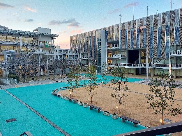4月に入り学内ではキービジュアルのデザインでラッピングされ、いよいよ100周年のムードが高まってきました。