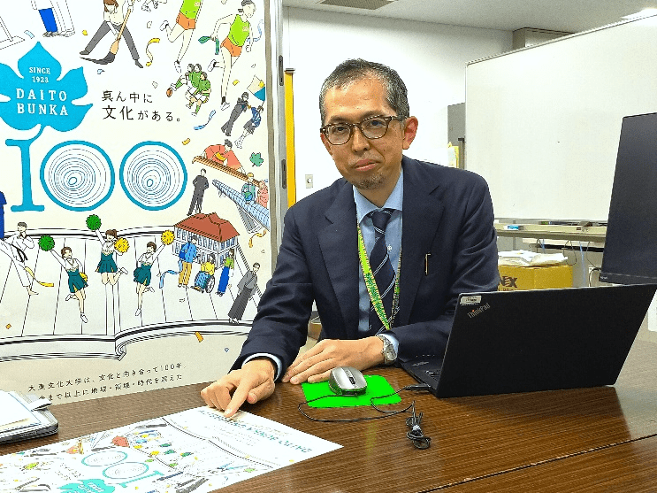 100周年記念事業をやろうと決めたときにはコロナやオンライン授業なんて想定していなかったので、この2年間は改めて人が集まることの大事さや喜びを見直す機会だったと思います。このイラストにあるように、そのときにいるいろんな人たちが集まってくれる場であってほしいです。「真ん中に文化がある。」ということを中心に大東文化大学は続いてきたので、そこで培ってきた校風や大学の良さを継承しながら、100年後も人が集まる場であってほしいなと思います。きっと、そうあると思います。