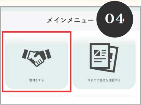 2回⽬以降の寄付をする際には、マイページにログイン後、「寄付をする」ボタンからお進みいただくと、すでにご登録いただいている⽒名や住所などの⼊⼒を省略することができます。