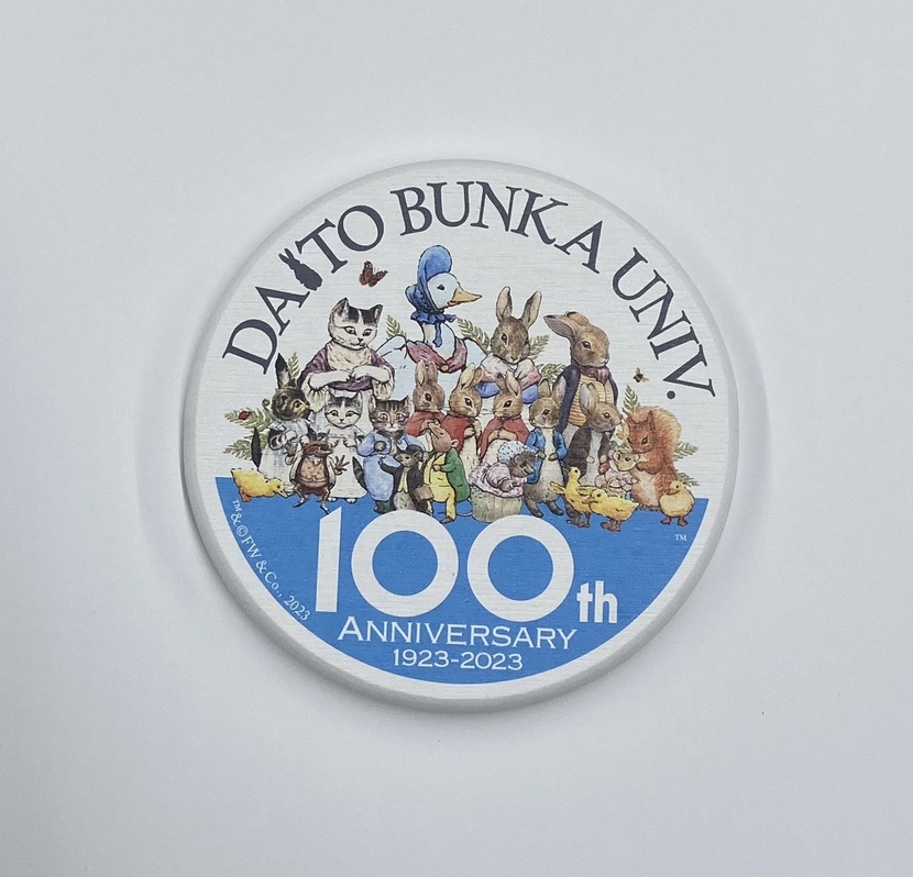 グラスが結露してしまうこれからの季節にぴったりの珪藻土コースターです。デザインには本学創立100周年を記念して作成したロゴを使用しています。