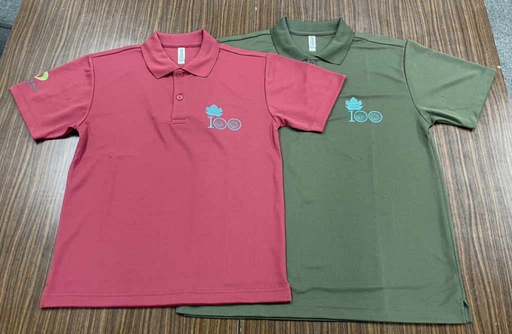 また100周年グッズチームが制作した記念のポロシャツも用意されており、これを着用し、100周年プロジェクトの一員として取材撮影に臨んでいます!