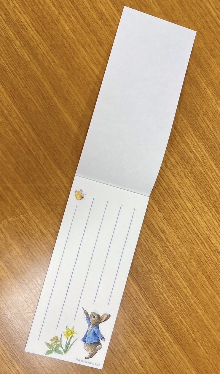 和紙一筆箋 限定500個 税込495円 筆を持ったピーターラビットのデザイン有