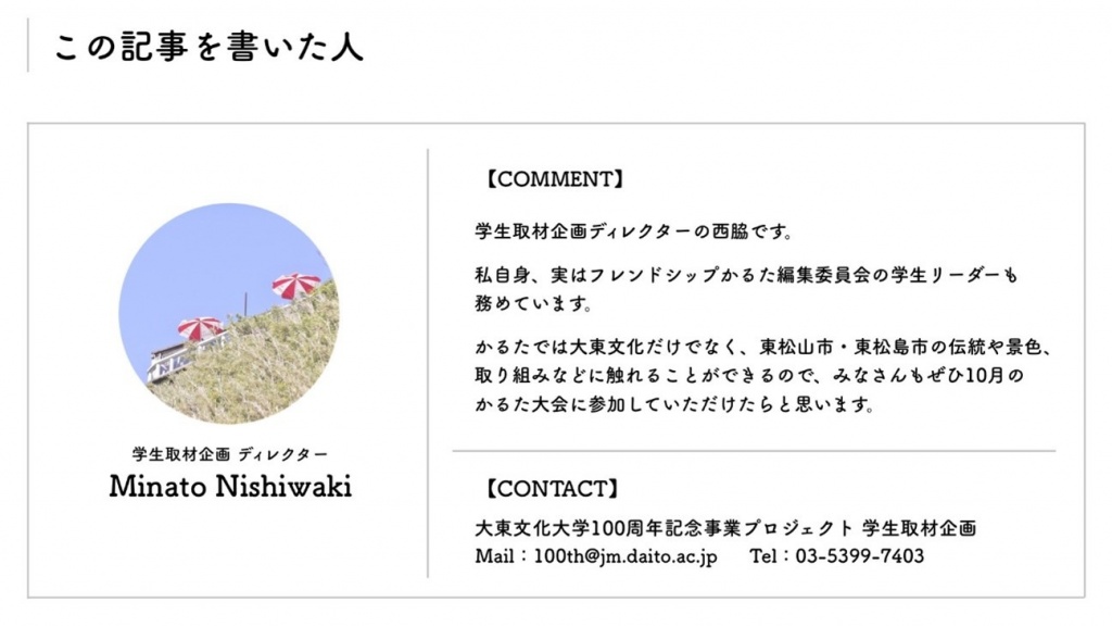 ※本記事は100周年記念プロジェクトを学生が取材、発信していく「学生取材企画」によるものです。