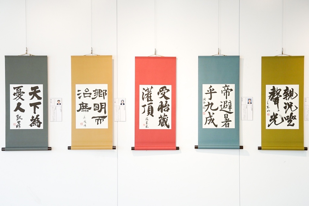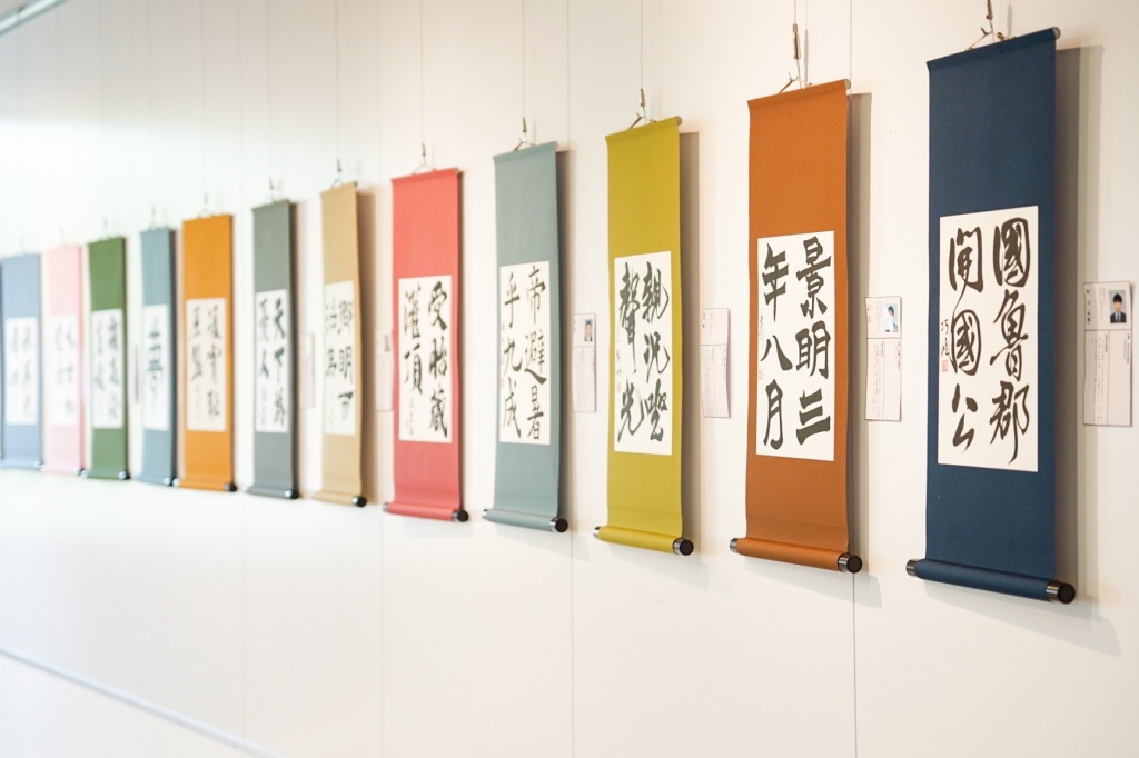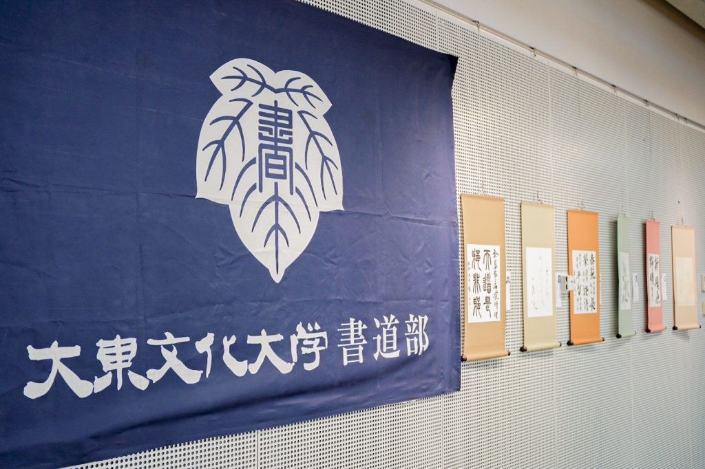 書道部は6月19日〜23日の期間中に2号館アトリエにて、作品展示を行いました。学内外を問わず “書道の大東” と呼ばれる本学ですが、実際に学生が書いた作品を見られる機会は意外にも少なく、整然と並ぶ作品の力強さと繊細さに、学生が書いていることを忘れてしまうほどに圧倒される空間でした。