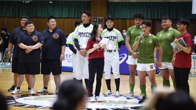 1970年代以降、箱根駅伝や全国大学ラグビー選手権での優勝で一躍名を馳せ、レスリングやスキーでもオリンピックに出場するなど、この時代から「スポーツの大東」と呼ばれるようになりました。女子学生の活躍も華々しく、当時、スケート部でインカレ3連覇を成し遂げた、角張亮子さんから、当時の部活動の様子を語っていただき、映像の後半ではラグビー部監督の酒井宏之さんと、ラグビー部アドバイザーのラトゥ・ウィリアム 志南利さん(元ラグビー日本代表)より、大東文化大学のラグビー部の歴史や練習についてお話を伺いました。