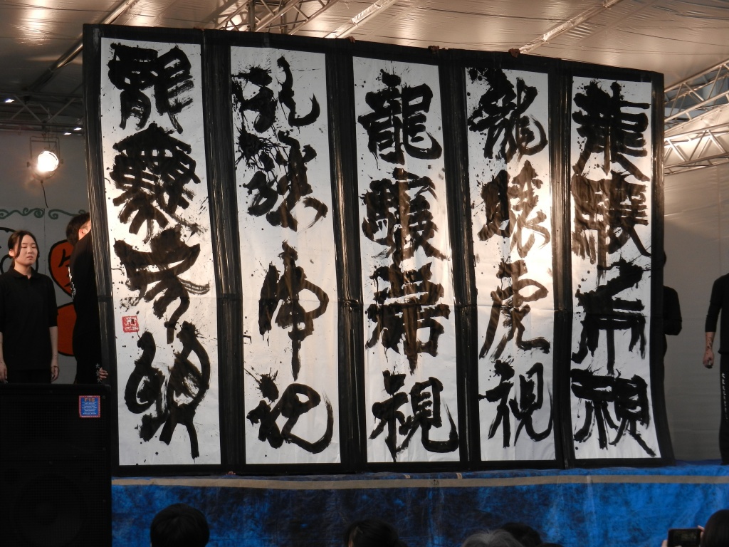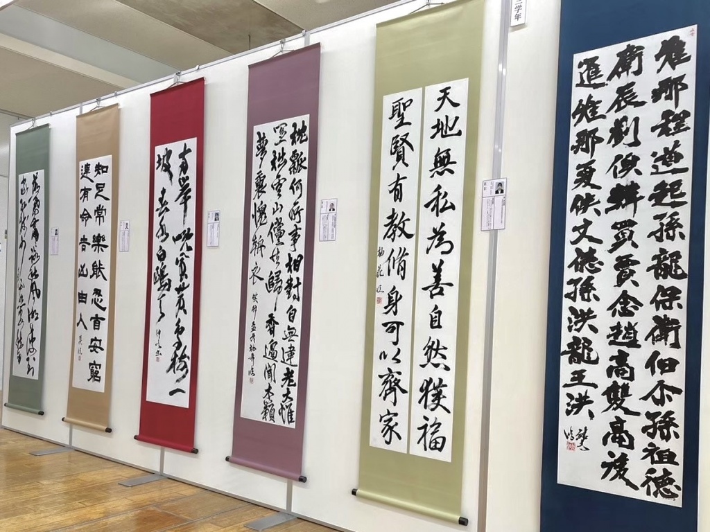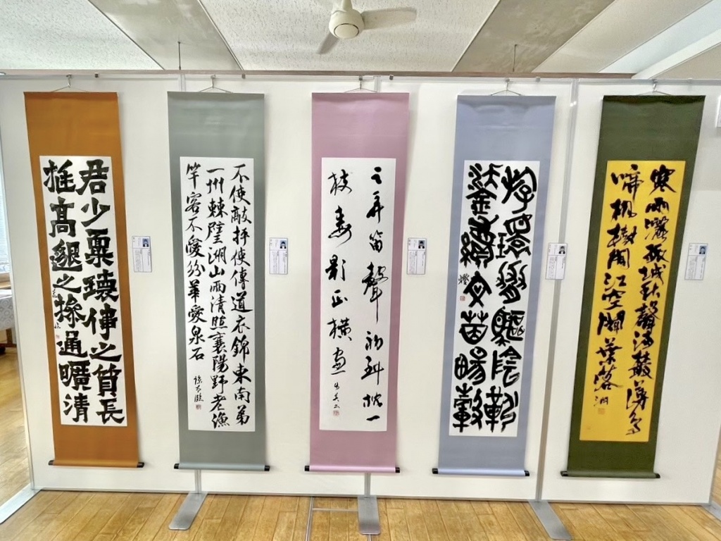 書道部員が自由に、得意なもので作品を仕上げる校内展。
