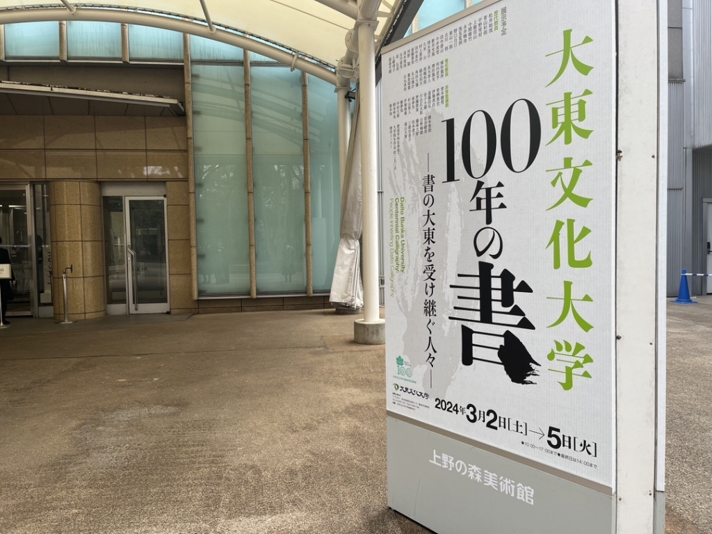この度、2024年3月2日から5日までの4日間、東京上野の森美術館において「大東文化大学100年の書―書の大東を受け継ぐ人々―」を開催し、4日間という短い期間にも関わらず計2,461名以上の来場者があった。書道展としては想像を超える入場者数となり、「書の大東」への関心と期待の高さがうかがえた。