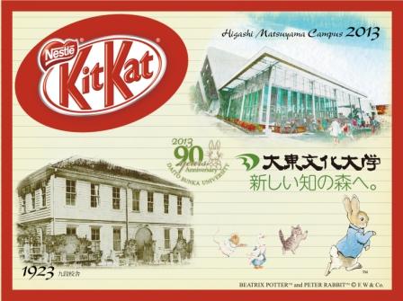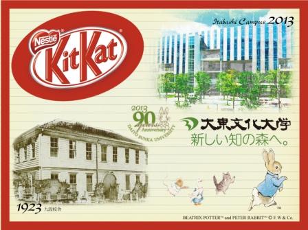 平成24(2012)年度の本学卒業生・修了生向けに配布しました「90周年記念Kit Kat」に続き、この度、デザインを新たに、大学内・外の皆様向けに「90周年記念Kit Kat」を販売開始しました。