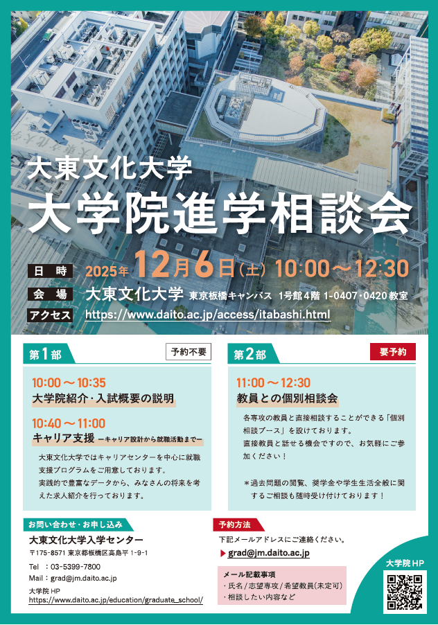 大学院進学相談会を開催します!(12月6日[土])*個別相談会のみ要予約お知らせ