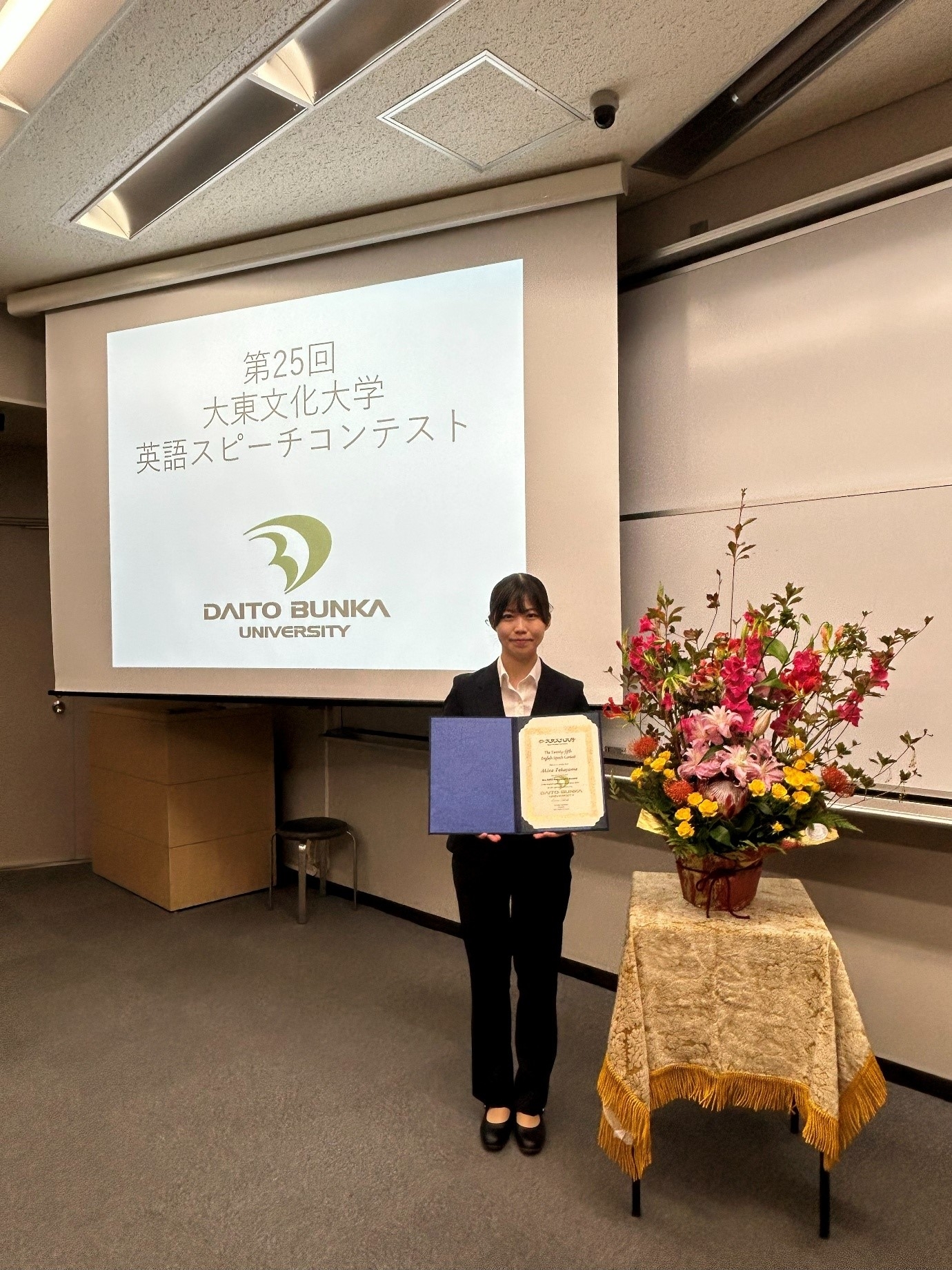 学長賞に高山 暁名さん(大東文化大学英語学科4年)