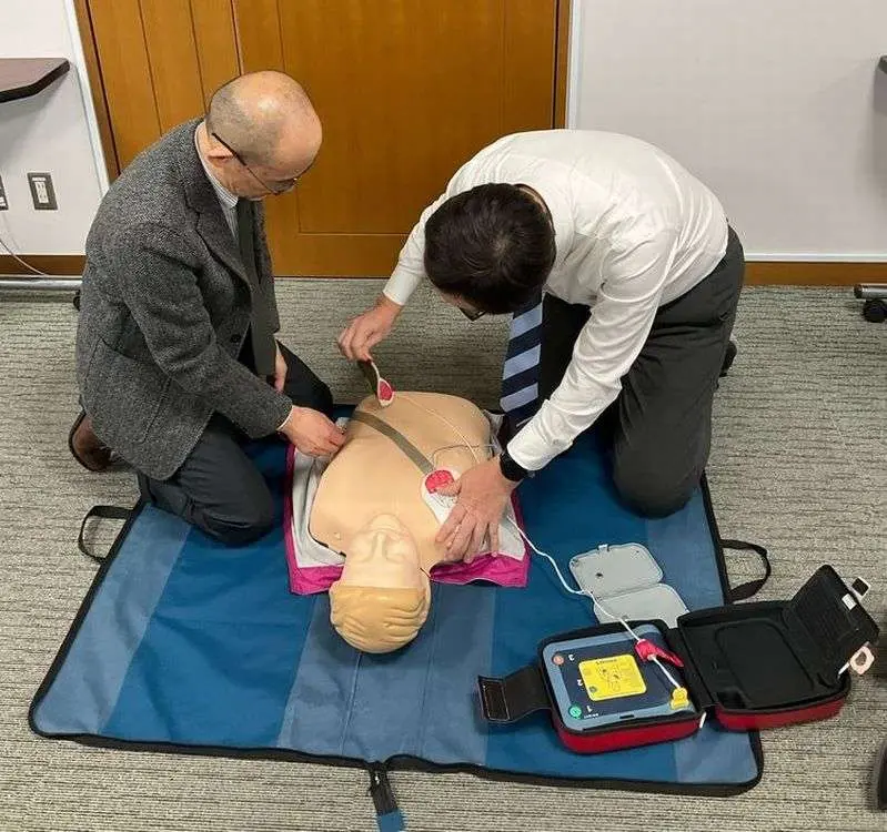なお、東松山キャンパスでは診療所長の福島斉先生と保健室によるAED講習会が11月中に計4回開催され、77名の教職員の方にご参加いただきました。