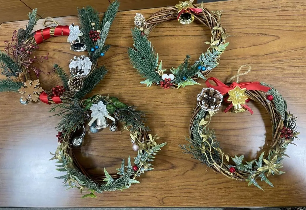 カウンセラー2名がファシリテーターとなり、クリスマスリースを作るワークを開催しました。まずは、お互いの自己紹介として「クリスマスに自分にあげたいご褒美」について話し、クリスマスソングを聴きながら、リース作りを行いました。リースのデザインや、流れている曲のこと、授業のことなどを話しながら、工作に取り組んでいる様子がみられました。