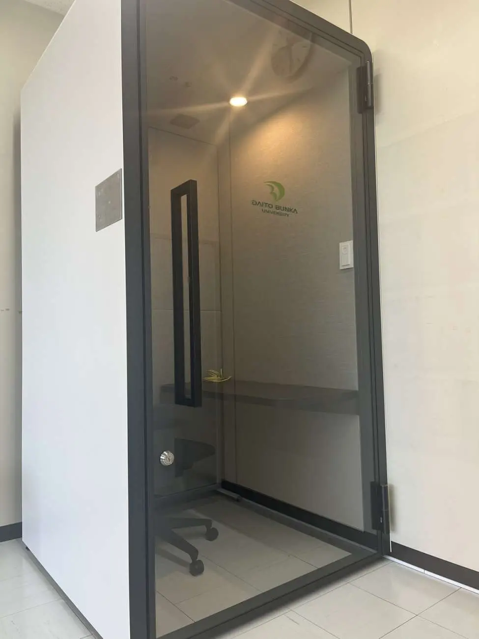 この度、本学の青桐会から寄付をいただき、東松山キャリア支援課(管理棟2F)に完全個室となる「WEB就活用個室ルーム」が設置されました。(写真参照)