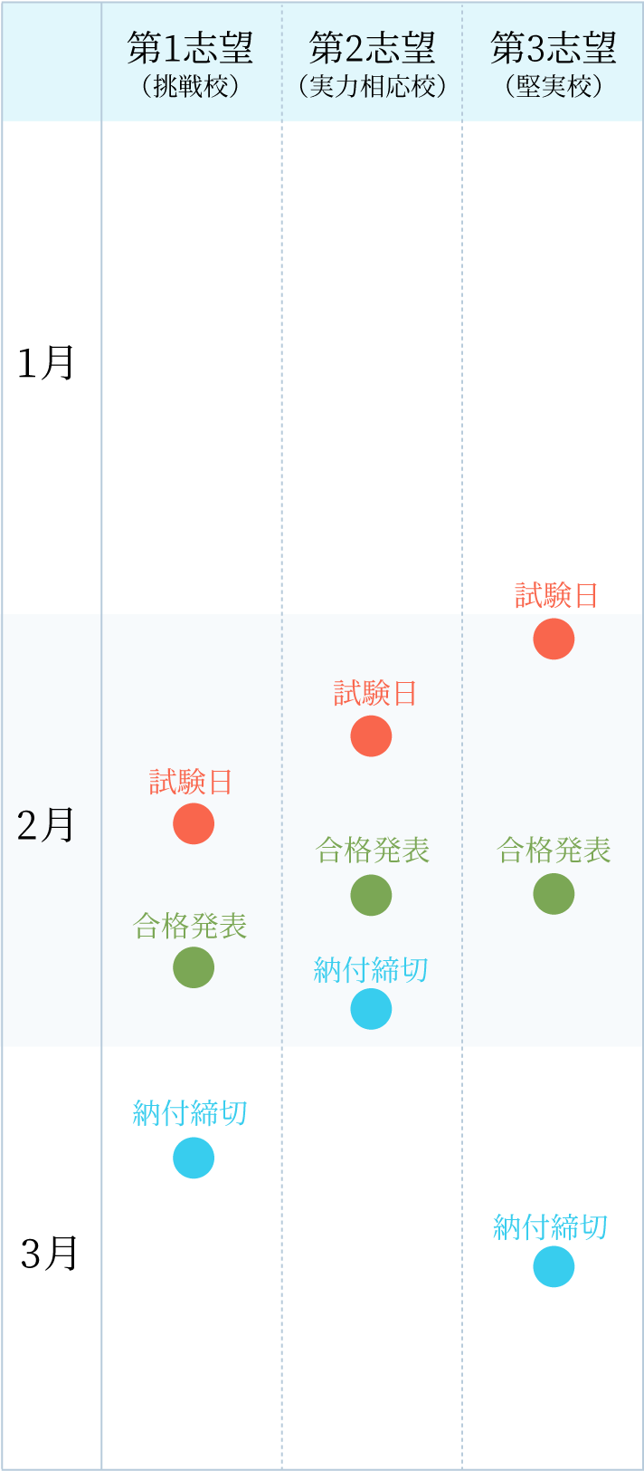 - Point1 第1志望で実力を発揮できるよう、最後に受験しよう