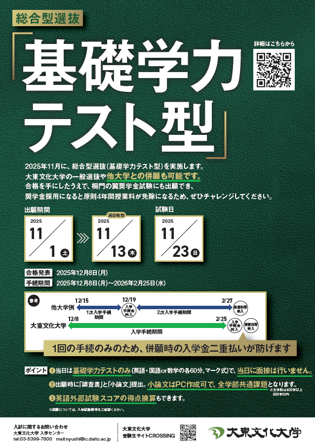 2025年11月に総合型選抜(基礎学力テスト型)を新たに実施します。