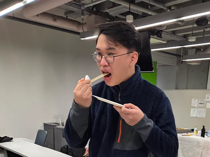 実は大根の葉を食べたことがない学生もいたのですが、大根の葉特有のシャキシャキとした食感とほのかな苦みが、甘いホットケーキミックスの生地の中で良いアクセントになることに驚いていました。チーズやキムチを加えればお酒のおつまみにもなりそうで、「次はこれを入れてみたい」と学生たちから次々にアレンジのアイデアが出てきたのも印象的でした。