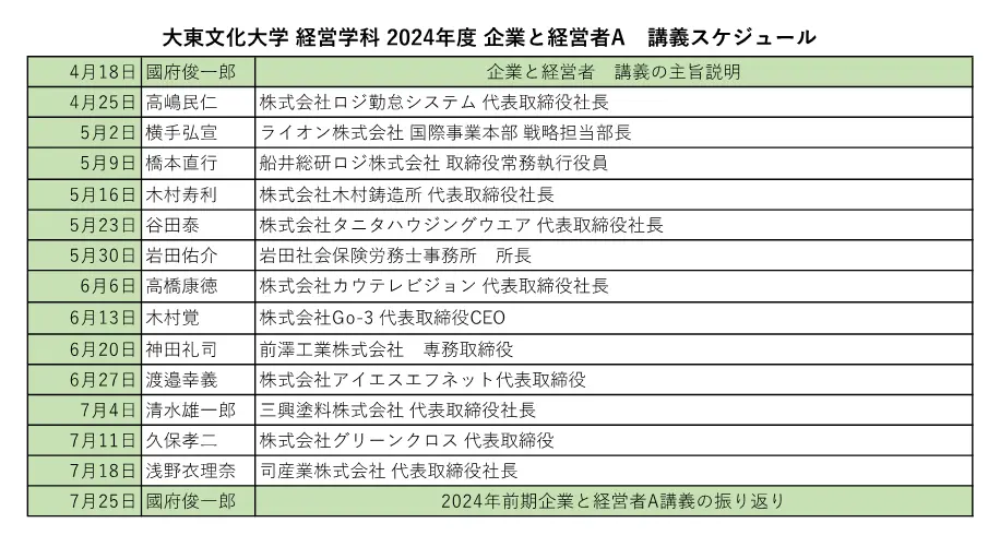 企業と経営者ABの講義は毎回異なる企業の経営者や管理監督職を迎えて実施する講義で、2024年度の企業と経営者Aの受講者数は4月25日の時点で370人を超えている。