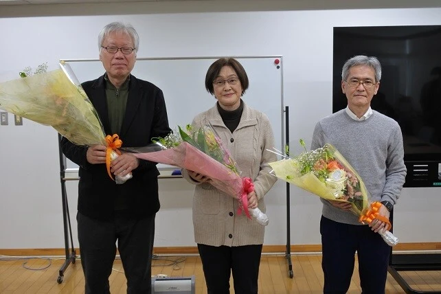 2025年3月12日開催の経営学部教授会において、2025年度をもってご退職される先生方へ、感謝の気持ちを込めて花束の贈呈が行われました。