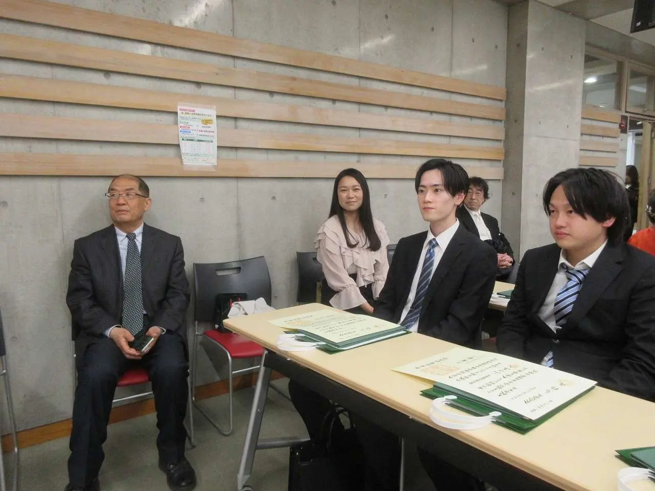 今年度より大学院修了者への学位記も同じ会場で手渡されることになり、大学院中国言語文化学専攻修了の学生(博士課程前期課程)3名が、安藤専攻主任より、「修士(中国言語文化学)」の学位記を授与されました。