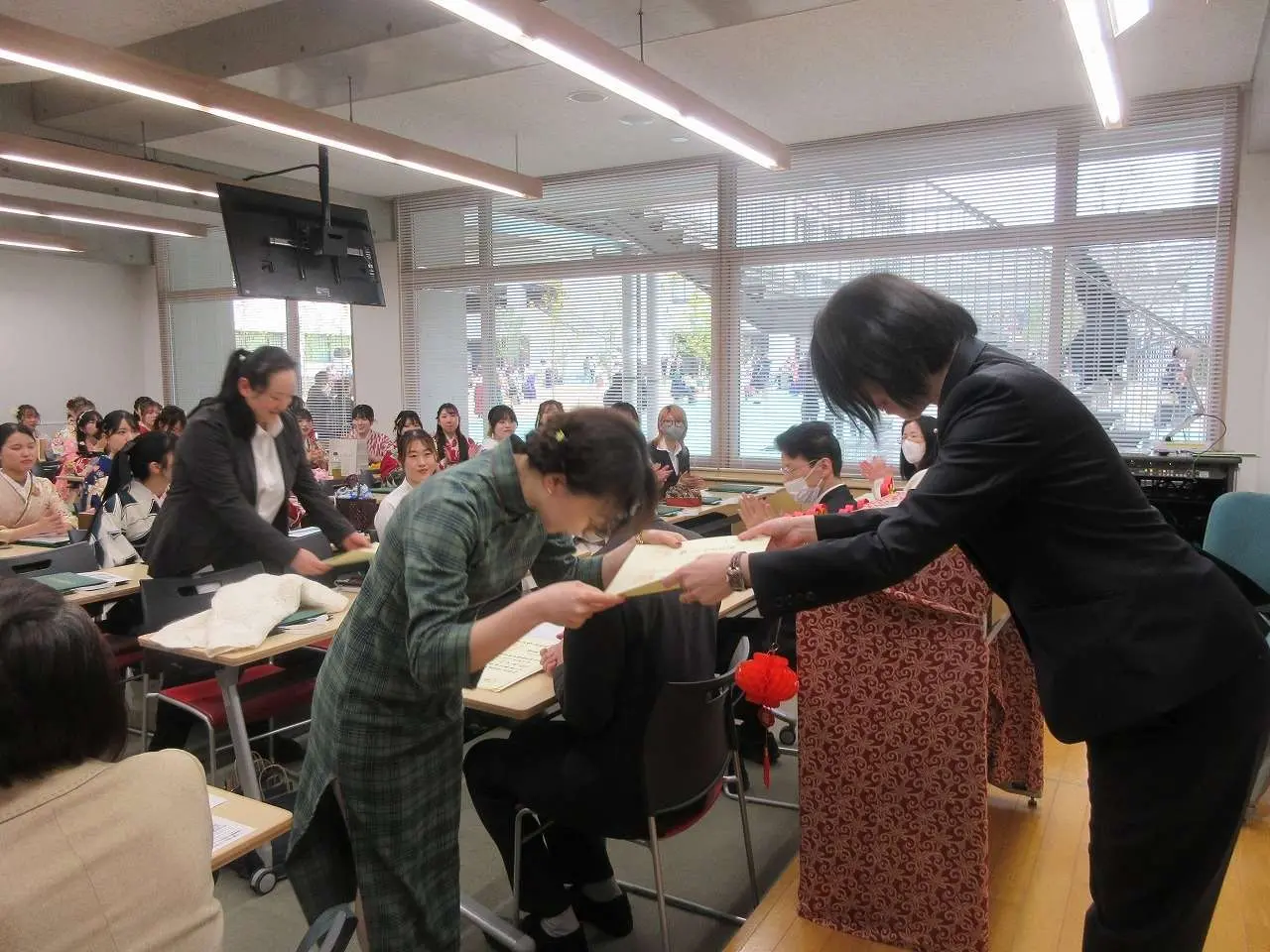 3月24日(月)、東京国際フォーラムでの卒業式式典終了後、本学板橋校舎3号館105教室を会場に、学位記が卒業生に手渡されました。