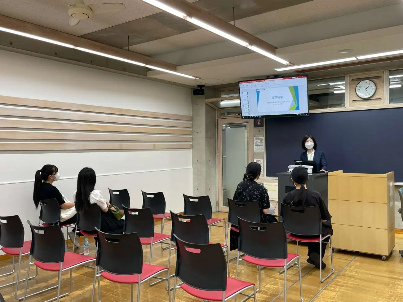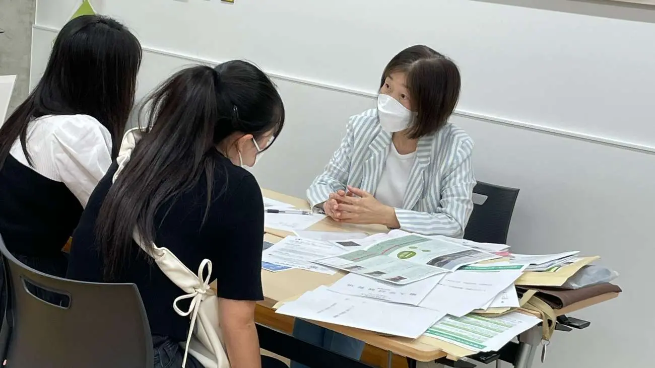中国語学科では吉田慶子先生が「リズムで覚える中国語」と題して体験授業をされたほか,今年度から学科独自開催の留学ナビをさらにパワーアップさせた「中国語学科入試ナビ・個別相談」も開催され,学科の専任教員が受験生の質問に熱心に答えていました。