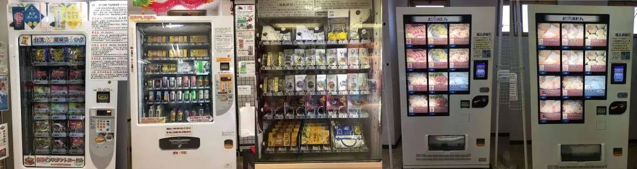 聖天宮の中は完全に台湾。自販機では台湾の食べ物が買えます。自販機は左から1台目イカスナック、お茶、インスタントラーメン。2台目有名なパイナップルケーキ、マンゴーケーキ、台湾ヌガー、ピータン(皮蛋)まであります。マンゴージュース、杏仁ジュース、リンゴソーダ、グァバジュース、黒松コーラはサロンパスの味がします。レディ・ガガならぬレディ・波覇・・・。3台目記念メダル、ハンカチ、変面人形は首を前に倒すと顔の隈取(くまどり)が変わります。4台目ちまき、小籠包、台湾ソーセージは甘めの味付け。5台目餃子、ニラまん、桃饅頭まであります。個数ではなくグラムで売るのが中国流。