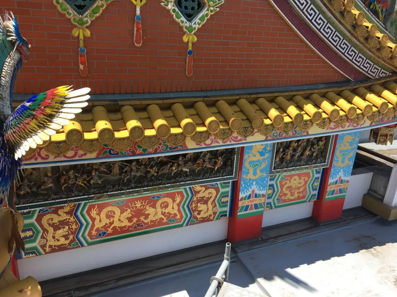 目もくらみそうな前殿の屋根の飾り。1995年完成とのことですから、すでに30年近い年月が経っていることが信じられないくらいきれいです。