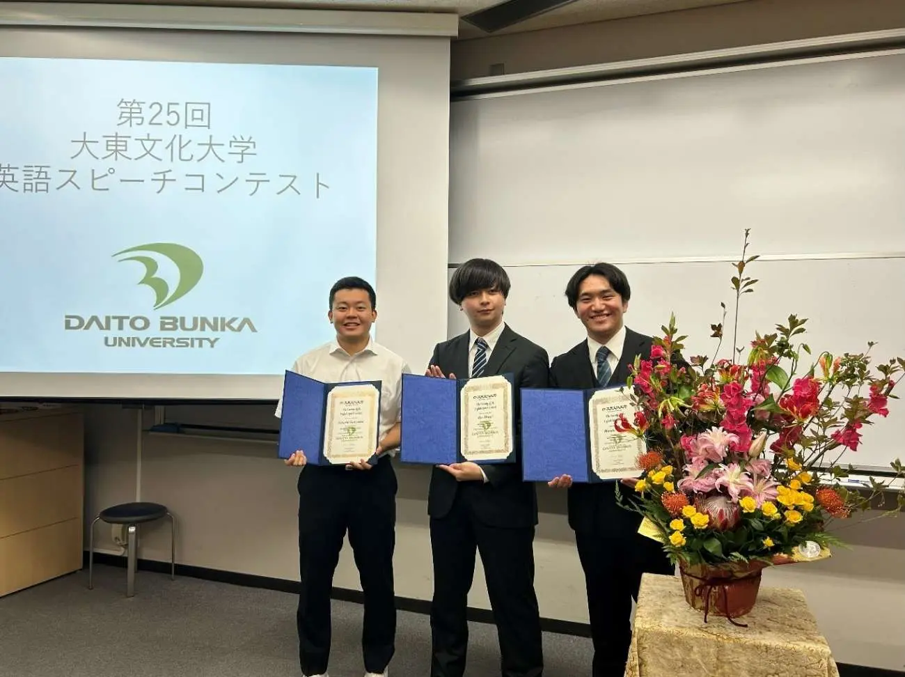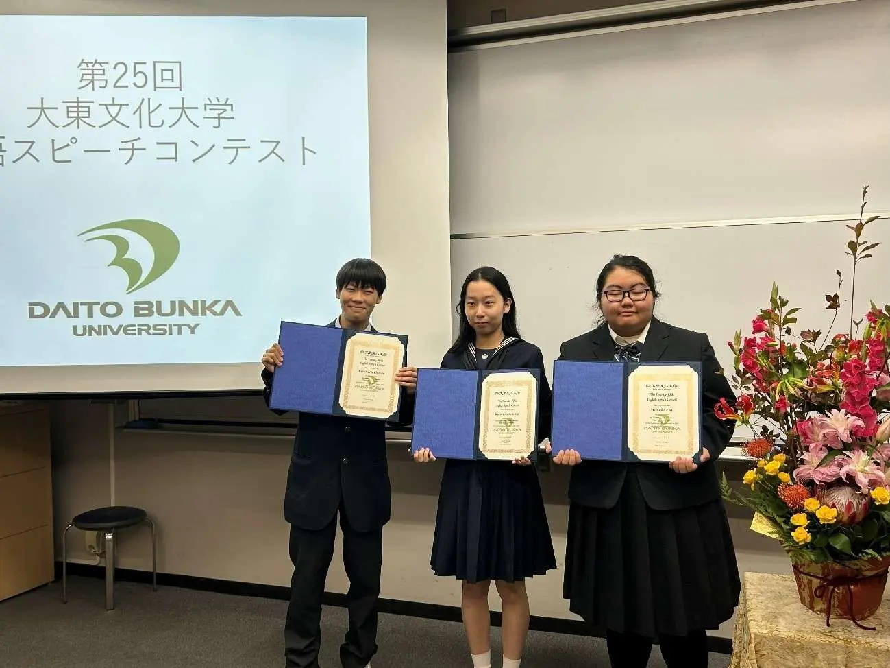 第25回学長杯英語スピーチコンテストが10月25日(土)に板橋キャンパス1号館10101教室で行われた。昨年度に引き続き、今年度も対面で行われた。本選出場を果たした高校生の部10名、大学生の部7名が学長賞を目指し、 “My Dream Job”( 「私の夢の職業」)をテーマに多彩なスピーチを披露した。