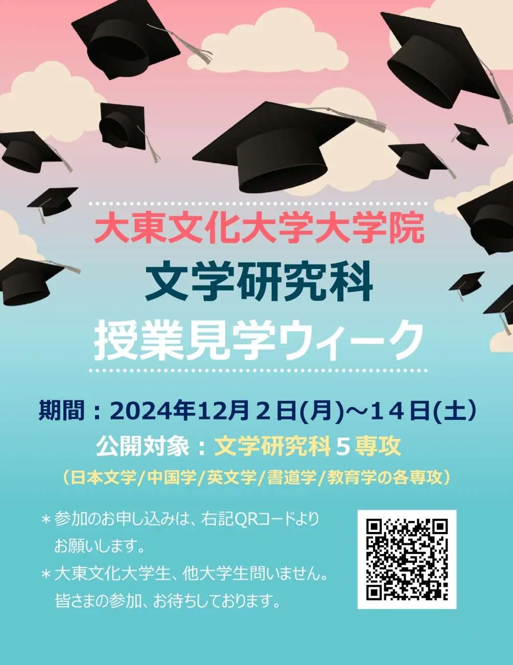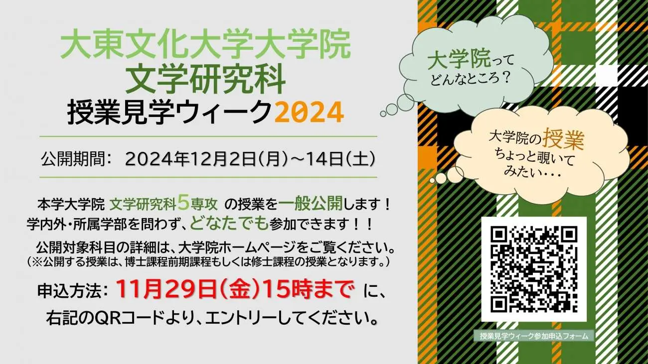大学院・文学研究科では、本年度も大学院の授業を一般公開します!