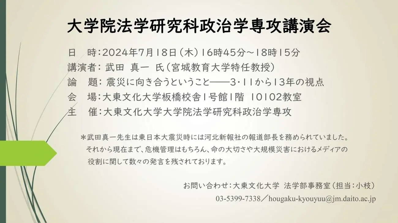 2024年度大学院法学研究科政治学専攻講演会のお知らせ
