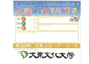 11月1日から3日にかけて、東松山市を会場に「第38回日本スリーデーマーチ」が開催されました。本年度より、大東文化大学が協賛団体になったことにともない、国際関係学部では、日本スリーデーマーチのボランティアを学部推奨ボランティア(DACIX対象)に認定し、10月6日と8日には、ボランティア説明会も行ないました。