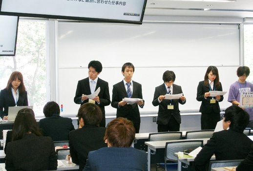 一次提案(中間報告会)には、(株)アドバンスサービス千葉支店の高橋春奈支店長、埼玉県産業労働部就業支援課の石井悠史主査、埼玉中小企業同友会事務局の田ノ上哲美主任にご参加いただき、有益なコメントを頂戴することができました。ありがとうございました。