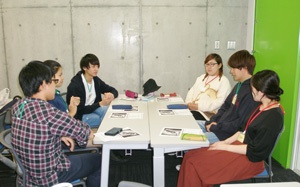 ディスプレイに映しだされたチームごとに、まずはチーム名とロゴの検討会議。名称の由来と、本取組にかけるチームの意気込みが発表されました。「ヌガー・ド・モンテリマール(Nougat de Montelimar)」「情熱きびだんご」「G・U・T・S!(ガッツ)」「Big Up(ビゴップ)」「パイナップル・エグゾディア(鳳梨黒暗大法師)」。着想が「問題解決学入門」の1年生とはまったく異なります。一つ違いの学年でこうも違うものかと、感心することしきりでした。