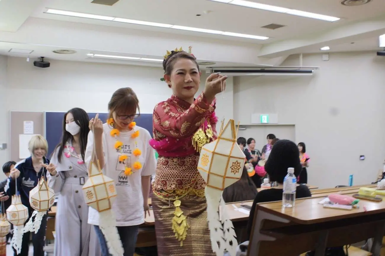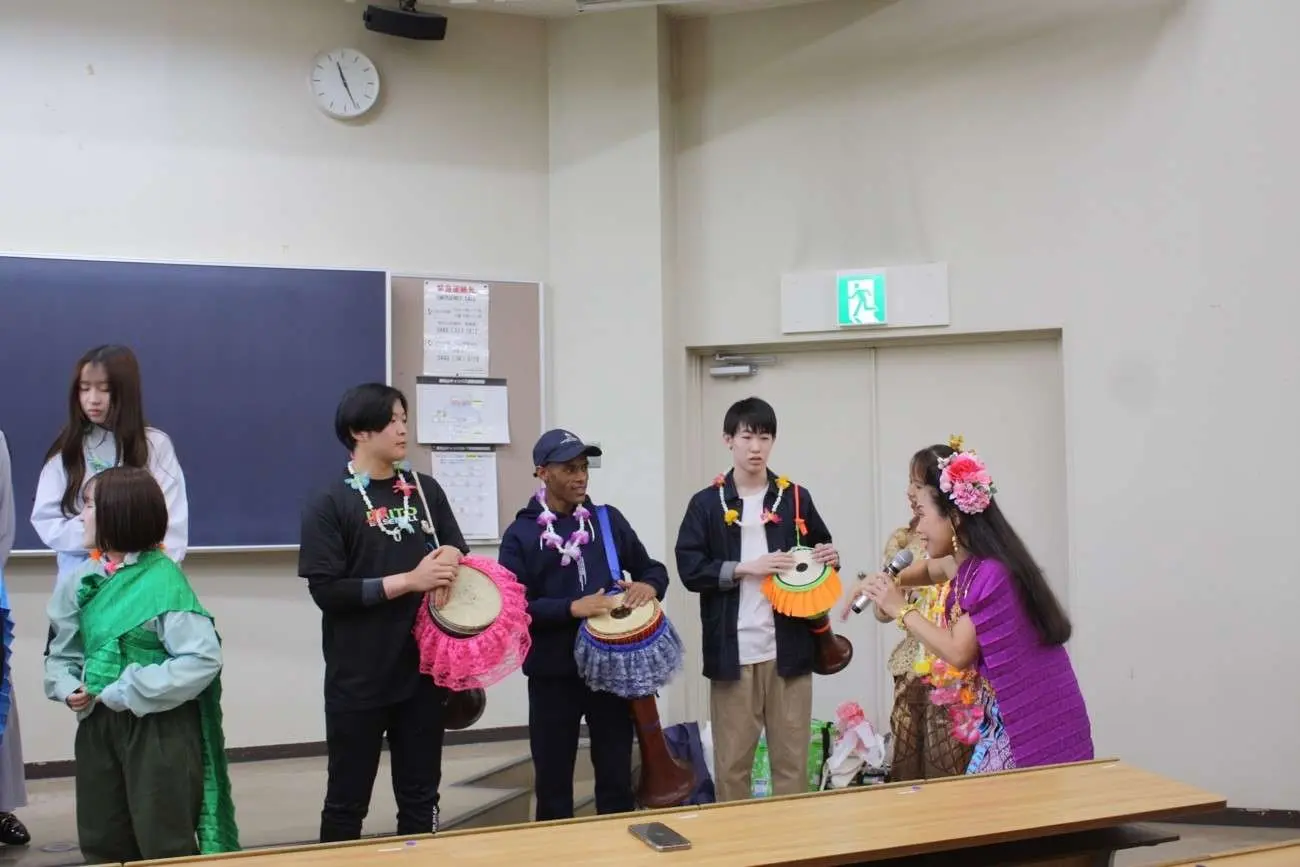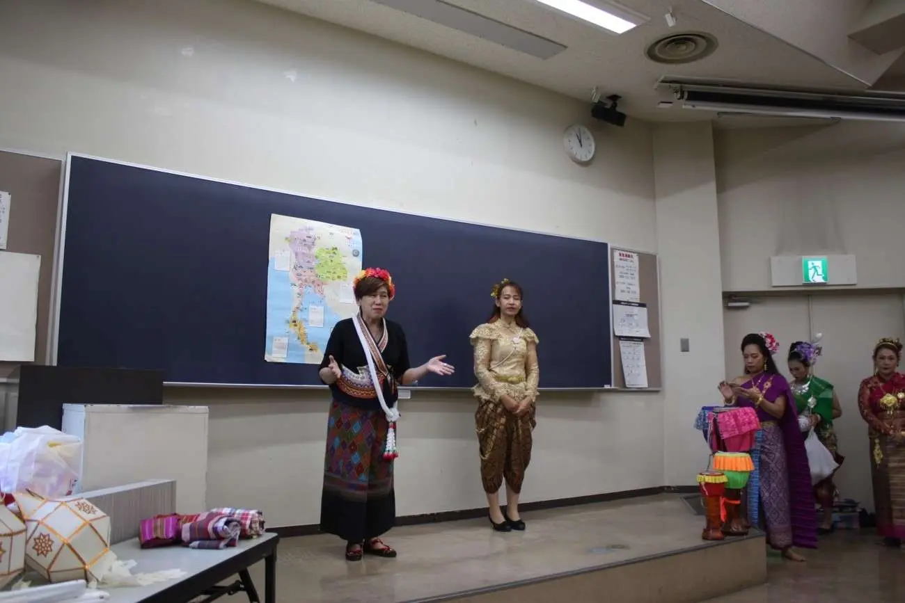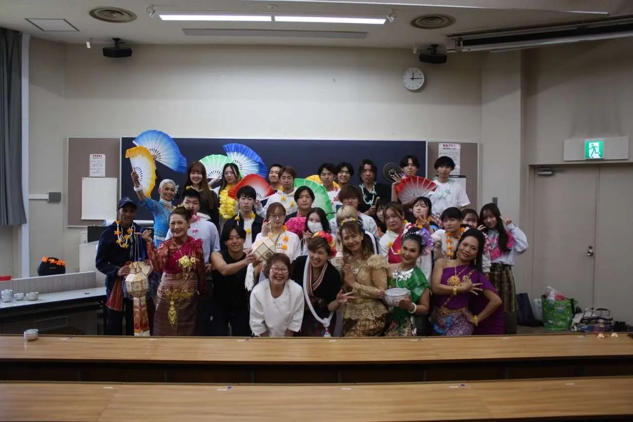 2024年5月22日の「国際協力・ボランティア入門」の授業において、埼玉在住タイ人クラブの方々によるタイの伝統舞踊の披露の後、学生たちへ舞踊や楽器などを教えて頂きました。