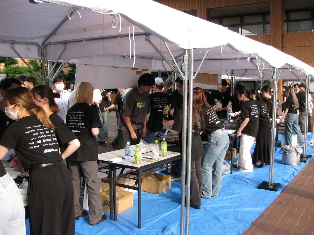ASIA MIXは、「食」を通じて異文化理解を深めようと給湯室のコンロで各国料理を作って食べたのがはじまりでした。ASIA MIXの最大のポイントはイベントの企画から運営までの全てを学生スタッフのみで行うことです。学生スタッフは4月から料理のメニューを決めたり、屋台の装飾をしたりしていました。