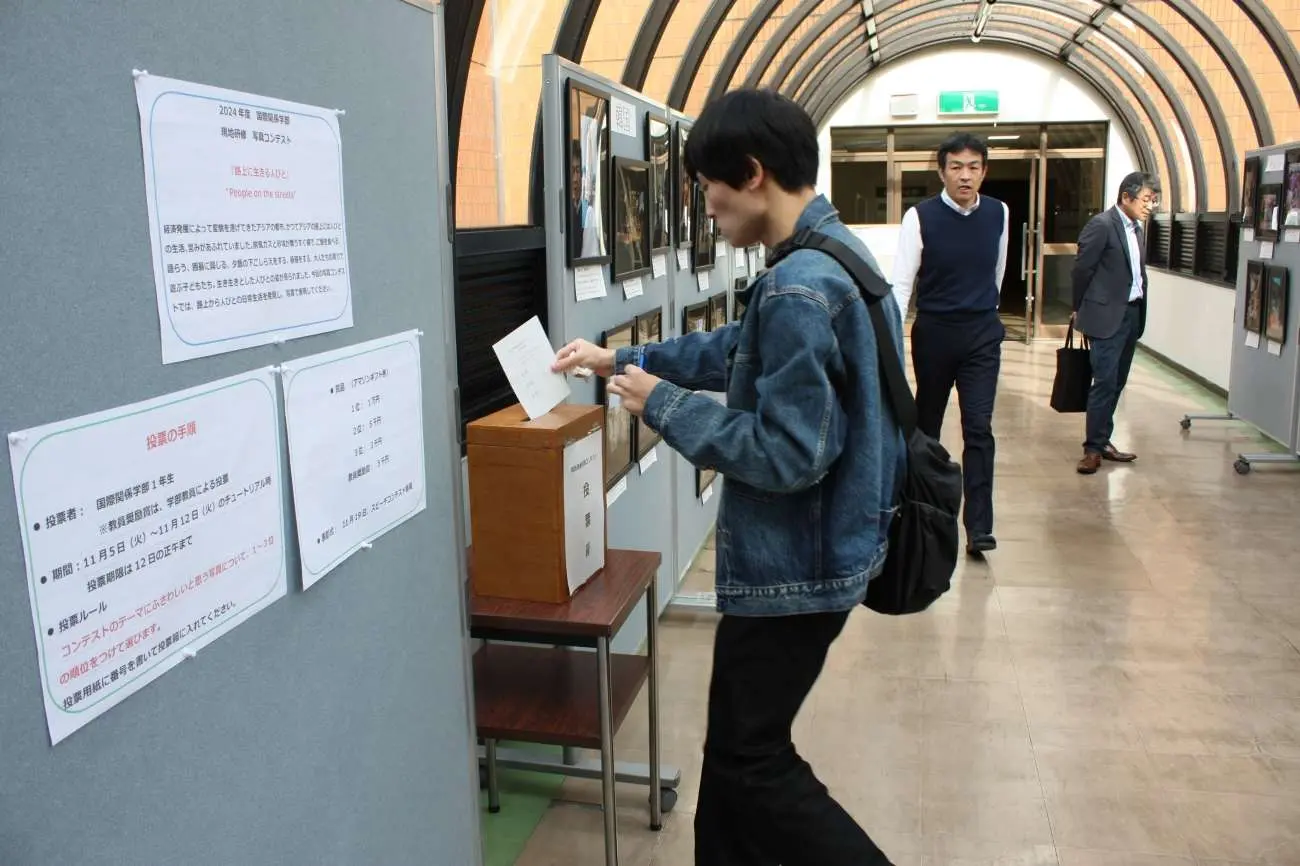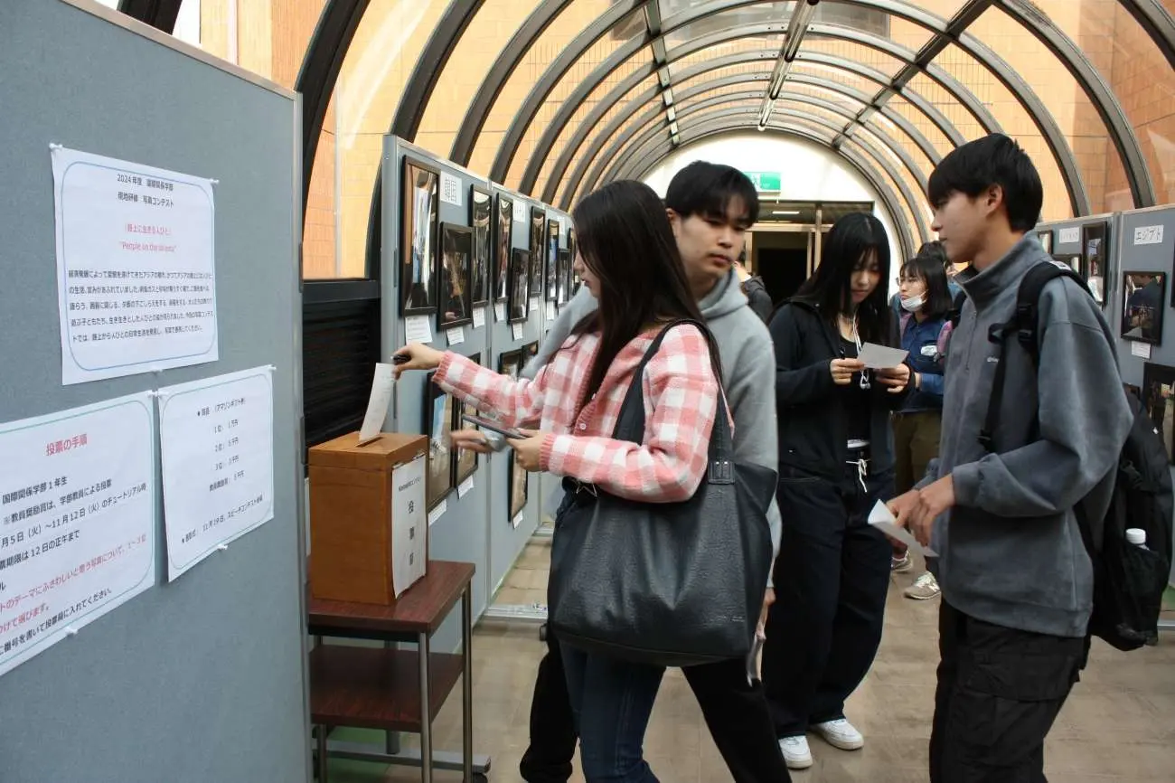 今回の写真コンテストは、今年度渡航地域であった中国、韓国、ベトナム、タイ、インドネシア、インドの6カ国から合計33点の作品が出展され、本学部の1年生により、投票が行われました。