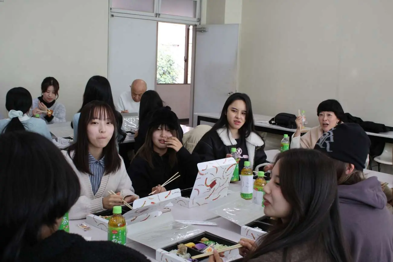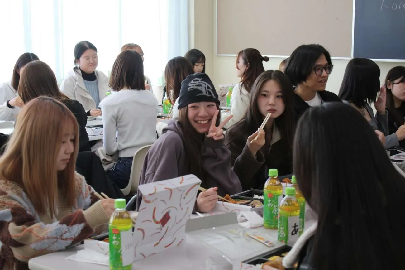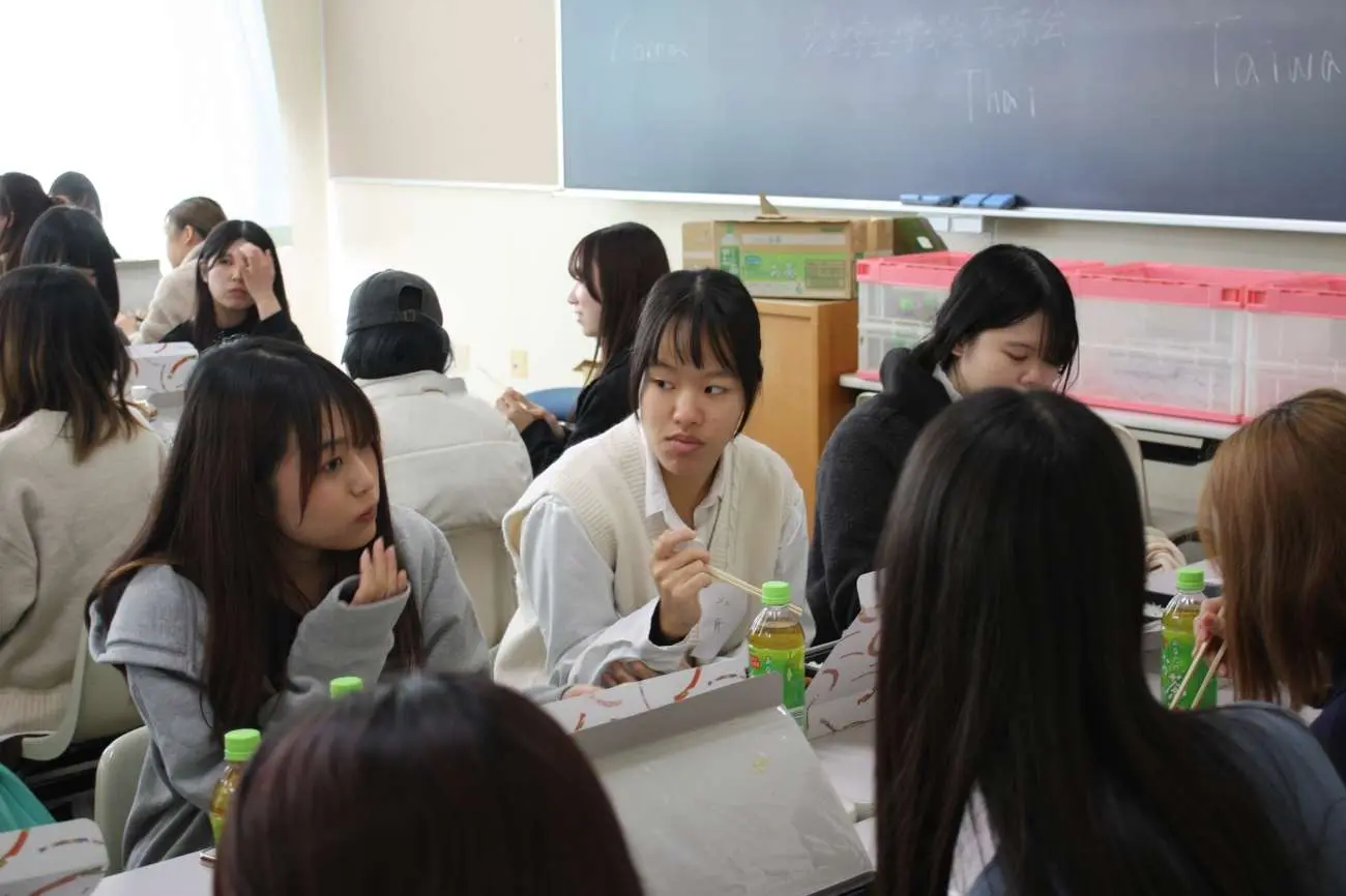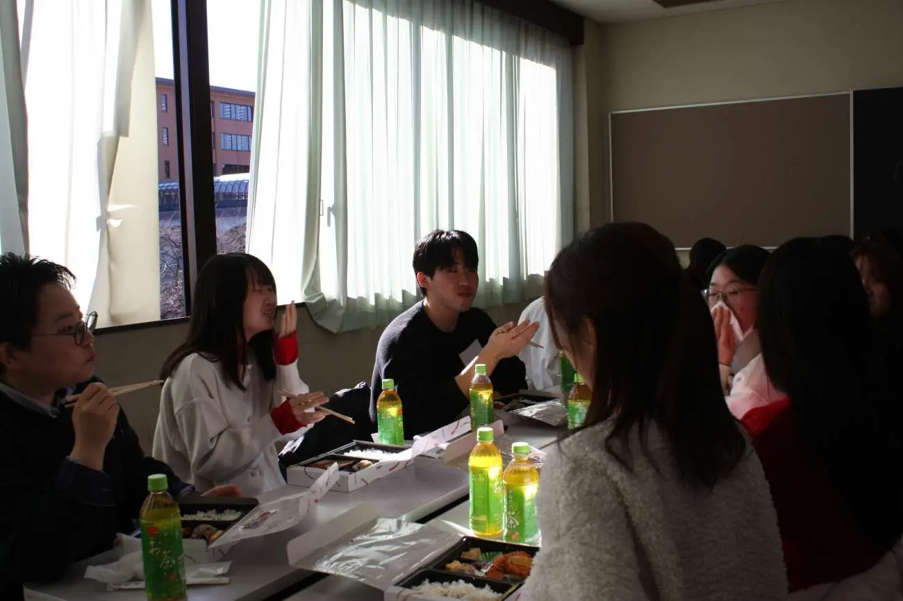 イベントでは、留学生と学部生が日本語を交えながら、互いの言語で会話をし,交流を深める姿が見られました。最初は緊張が見られましたが,昼食が進むとともに会話が弾むようになり、積極的に交流する様子が印象的でした。さらに、SNSを交換する場面も見られ、学生たちは新たなつながりを築き、親交を深めていたようです。