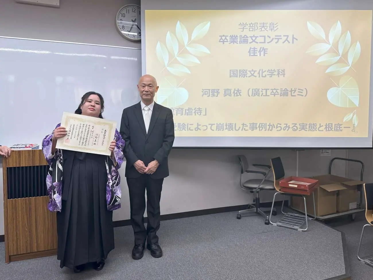 本年度は、196本の卒業論文の中から、最優秀賞1本、優秀賞1本、佳作1本の計3本の論文が選ばれています。