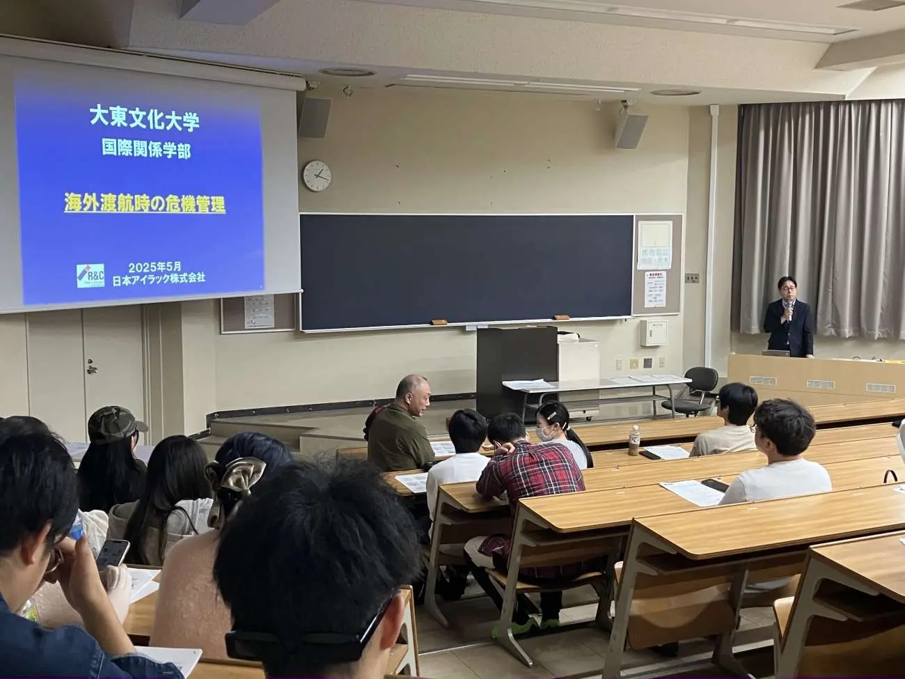 日本アイラック社の担当者様からは、国や地域ごとの具体的なトラブル事例をもとに、昨今の国際情勢に対応したリスク管理や防犯対策、貴重品の管理方法、万が一の際の連絡手段など、実践的な内容が紹介されました。