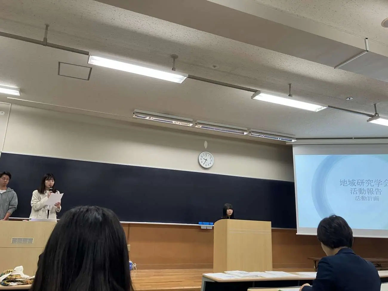 5月27日(火曜日)、11号館0101教室において、地域研究学会・2025年度総会が開催されました。1年生を中心に187名(終了時197名)の会員が出席しました。なお、委任状は14通(定足数:166)。