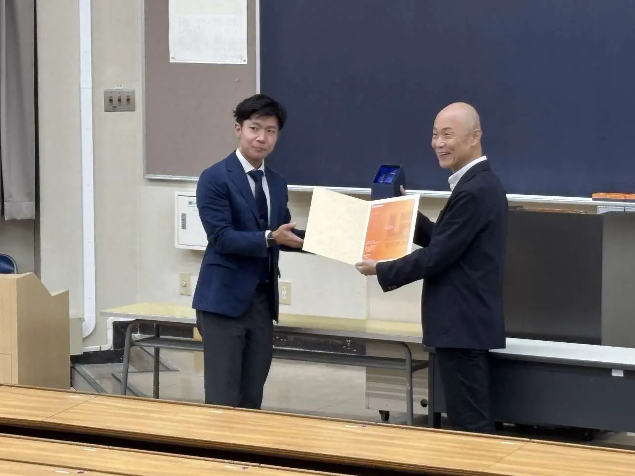 11月7日(火)、641教室において「異文化理解特殊講義2(世界遺産検定Ⅱ)」の冒頭で「2025年度 世界遺産検定 毎日新聞社賞」の授賞式が行われました。